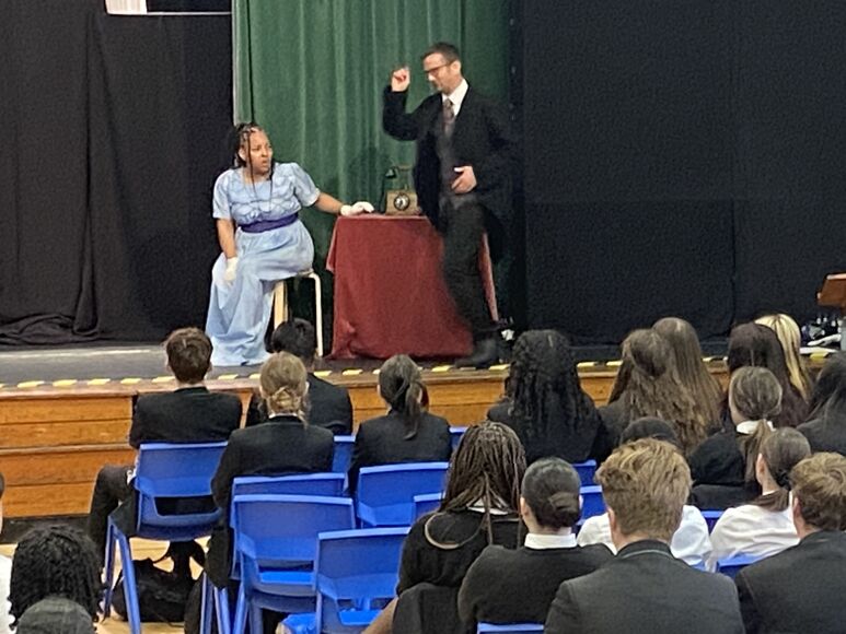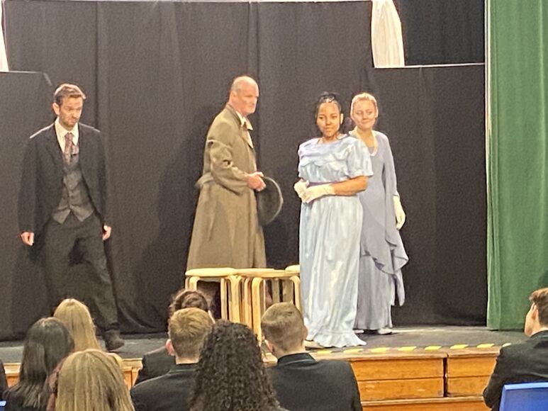 The Globe Players, a touring company made up of four highly versatile character actors, brought JB Priestley's morality tale to life in an hour long adaptation of the play. Students were treated to expert analysis of the key scenes and key speeches and left the hall with a more sophisticated appreciation of JB Priestley's skill as a playwright.