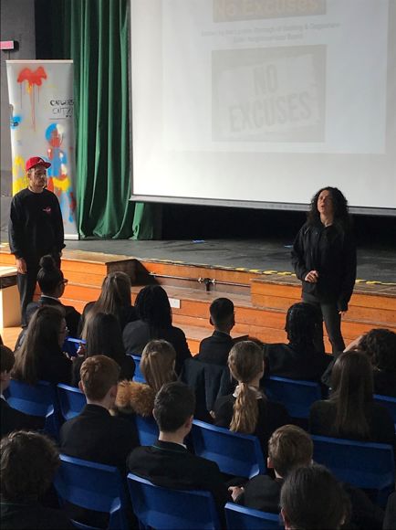BackYear 8, 9 and some Year 10 Prefects watched a captivating and thought provoking interactive performance piece from The Arc Theatre Group called No Excuses.