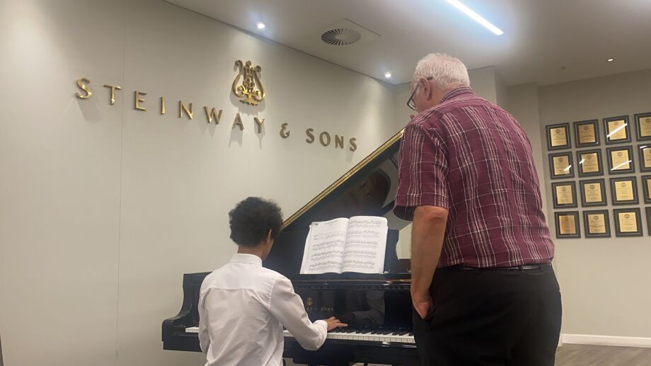 Daniel Tahmisyan (yr9) performed "Andante" from JS Bach's Organ Sonata no.IV on the recital standard grand piano. Daniel received feedback from Martin on points to improve, dynamic changes and lightness of touch between his hands. Daniel's accurate performance impressed the audience made up of piano scholars, Abbs Cross pianists and other masterclass students.